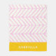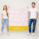 Ajoutez un éclat de joie à toute chambre avec cette couverture en toison personnalisée, avec des lignes en chevrons roses audacieuses et un panneau de nom jaune soleil. Moderne, gaie et confortable, cette couverture est un cadeau personnalisé parfait pour les enfants, les adolescents ou toute personne qui aime le style graphique et ludique.