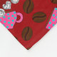 Idées cadeaux de café. Motif de tasse de café avec tasses roses et pois bleus et fèves de café marron avec arrière - plan rouge, bande de diamants rouges (pas de vrais diamants) personnalisée avec vos cadeaux de nom ou de monogramme ou vos initiales. Cadeaux idéal pour les amateurs de café.