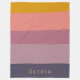 Cette couverture en toison présente une palette de couleurs chaudes et muettes, avec des rayures horizontales dans les tons de moutarde, de rougissement, de mauve et de marine profonde. Le design offre une esthétique élégante mais apaisante, parfaite pour ajouter une touche cosy à toute chambre ou espace de vie. Personnalisez-le avec un nom en lettres élégantes et minimes pour un cadeau réfléchi ou un accent unique. Que vous soyez curling avec un livre ou décorer votre espace, cette couverture personnalisée apporte chaleur et personnalité.