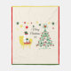 Un ours en peluche mignon et câlin, assis sur une chaise, portant son casquette de Noël et tenant une boîte cadeau. Il se tient à côté d'un sapin de Noël orné de décorations de Noël et d'étoiles colorées. Style vintage classique. Personnalisez-le avec un monogramme ou un nom.