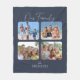 Un design simple pour présenter vos photos de famille sur cette couverture en toison. Le design offre de l'espace pour 4 images accentuées avec écriture manuscrite qui dit : Notre famille. Couverture personnalisée en bleu foncé avec votre nom de famille. La couleur arrière - plan peut être changée en couleur foncée.