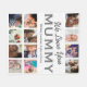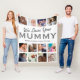 Une couverture fleurie cadeau de jour de la mère personnalisée avec un arrière - plan blanc élégant qui peut être changé à n'importe quelle couleur, 12 photos de famille, les mots "nous t'aimons maman", et les noms des enfants.