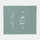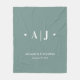 Cette couverture en toison offre un design minimaliste moderne avec un monogramme et le nom et la date du mariage des jeunes mariés. L'arrière - plan est vert sauge clair et peut être changé en n'importe quelle autre couleur foncée. C'est un grand cadeau personnalisé pour les jeunes mariés.