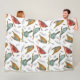Une couverture en toison avec différents oiseaux dont des cardinaux, des bleuets, des poulets et des mouchards avec des plumes tirées à l'encre avec de l'aquarelle. J'ai aussi des coussins avec ce motif sur eux. Idéal pour les cadeaux et le décor maison !
