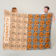 Orange Black Retro Rad Pumpkin Checkered Halloween Fleece Blanket - A cute and fun Halloween themed personalized blanket. Featuring black and white checkerboard and orange and white checkerboard, classic Halloween colors. A smiley face pumpkin with lightning eyes adds to the fun, retro spooky season aesthetic. Perfect for as a Halloween gift or to add to your Halloween decor.