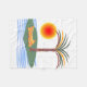 Couverture en polaire avec ma conception vectorielle originale et simple mais colorée d'un palmier, soleil orange vif et vagues.