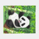 Cette couverture en toison présente un adorable panda assis dans une forêt de bambou. Cela ferait un merveilleux cadeau à quiconque aime les pandas et les animaux en général. Le nom sur la couverture est personnalisable avec le nom du destinataire.
