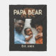 Papa Bear Father Year Established Photo Black Fleece Blanket. Celebrate a special father figure with this "Papa Bear" photo fleece blanket. This design features a rustic bear silhouette and bold vintage-style typography. The easy-to-use photo template allows you to showcase a favorite family memory, making it a thoughtful keepsake for Father's Day, first-time dads, or birthday gifts. Add the year you became a dad or grandpa, and add more years for more children. Photo can be adjusted in the Design Editor tool using "crop". Contact the designer with any customization questions.