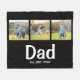 Célébrez la paternité avec style avec cette couverture en molleton photo Papa Établi avec une élégante écriture blanche et un espace pour trois photos personnalisées. Un cadeau sincère et pratique pour les papas, cette couverture en molleton personnalisée est parfaite pour une utilisation quotidienne.