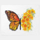 Papillon monarque orangé, détaillé avec aile décoré de pavot jaune et vibrant de Californie sur arrière - plan blanc.