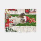 Papillon Chien Noël assis à l'extérieur de la maison décorée avec la couronne de Noël, le sapin de Noël est une idée cadeau de Noël parfaite pour les amoureux de les chiens.