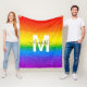 Confortez-vous avec cette couverture en toison personnalisée de parties scintillant et glam LGBT et montrez votre soutien. Le design chic à rayures arc-en-ciel comprend des nuances de rouge, orange, jaune, vert, bleu et violet en fausse parties scintillant avec une initiale monogramme en blanc et nom dans le script noir moderne. Montre ta fierté !