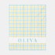 Cozy up with this soft, personalized throw blanket featuring a cheerful plaid pattern in refreshing pastel yellow and aqua blue. This airy, customizable design includes a prominent band for personalization. Easily customize it with a name or initial to create the perfect welcoming home accent. It makes a thoughtful personalized gift for new babies, housewarmings, dorm rooms, or Mother's Day.