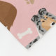 Les chiens mignons de Collie rugueux s'assoient et se tiennent et se retournent avec des manteaux de sable, tricolores, merles et blancs avec des os de chien éparpillés et des motifs de pawprints.