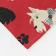 Chiens écossais mignons, noirs, gris et roux, avec des arcs, avec des empreintes et des os de chien sur un arrière - plan rouge.