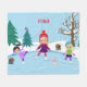 Scène hivernale Patinage de glace fille FLEECE BLANKET avec des amis animaux regarder.
