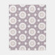 Les motifs circulaires blancs sont répartis uniformément à travers la couverture, formant un agencement harmonieux. Chaque cercle blanc est détaillé avec des motifs complexes à l'intérieur, ce qui lui donne un aspect élégant et sophistiqué. Autour de chaque cercle blanc est un design complexe dans une ombre lavande qui complète et contraste les cercles centraux. L'atmosphère générale de ce pays se sent design est d'élégance et de calme.
