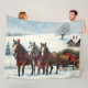 Couverture Polaire Paysage hivernal avec chevaux et Cabine