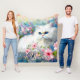 Couverture Polaire Persian Cat Blue Eyes in Pink Flowers Personalized