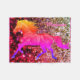 A personalized baby blanket with a rainbow colored horse on it.