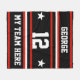 étoiles noir rouge blanc Personnalisé avec nom,#, équipe, fan de sports Équipe. Design par Sandy Closs. collège, rayures, athlète, esprit, entraîneur, enfants, équipes, filles, garçons, personnalisées, nouveauté, ado, joueur, ligue, softball, hommes, customisés, athlète, baseball, football, hayon, tailgating, jeu, ventilateur, basket-ball