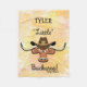 Personnalisez la chaise Longhorn Steer Fleece Blank de ce Petit Cowboy "One of a Kind" ! Il présente un comique Longhorn Steer portant un Casquette Western Cowboy avec une Sheriff's Star sur un Arrière - plan jaune et orange...Entouré par les mots...."Petit Buckaroo" !