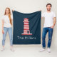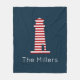 Couverture Polaire Phare rayé Nautique Rouge Blanc Bleu NOM