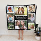 Célébrez votre famille avec cette couverture noire personnalisée avec un collage photo de 8 de votre famille, animaux domestiques, souvenirs, etc., dans des cadres blancs, votre nom de famille dans un script blanc et les noms de chacun dans une simple typographie blanche.