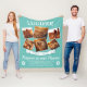 Une couverture commémorative personnalisée avec un arrière - plan turquoise tendance qui peut être changée en n'importe quelle couleur, 6 photos précieuses de votre animal bien-aimé, empreinte de patte de coeur, le texte de souvenir "pour toujours dans nos coeurs", une citation sympathique qui dit "quand demain commence sans moi, ne pense pas que nous sommes loin, pour chaque fois que vous pensez à moi, je suis juste ici dans votre coeur", votre chien ou le nom et la date de naissance ou de décès.