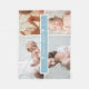La couverture en polaire moderne présente 4 photos sur une grille avec le nom du bébé et les statistiques de naissance sur un bloc rectangulaire bleu bébé. Un véritable objet de collection !