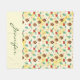 Couverture avec un motif de Noël mignon avec des cônes de pin et saint sur un arrière - plan d'aquarelle jaune avec des petits cercles blancs éparpillés autour. Nom personnalisé écrit à l'intérieur d'une bordure jaune le long du fond.