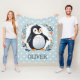 Décor personnalisé de couverture de manchot amusant - un mélange chaleureux de charme adorable et d'élégance florale. Ce mignon manchot de dessin animé est entouré de fleurs blanches sur un arrière - plan pois apaisant.