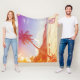 Couverture Polaire Plage, cocotier, lit en bois.