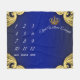 Plaid jalon de bébé garçon avec une belle couronne royale bleue et or sur un fond tourbillonnant bleu royal et or. Cette belle couverture de bébé prince pour jalons est parfaite pour les séances de photos de bébé. Trouvez simplement quelques jolis cadres dorés et placez-en un autour du nombre et l'autre autour du jour, du mois ou de l'année, et placez bébé sous la zone de nom. Vous pouvez également déplacer la couronne et le nom selon vos besoins. Vous pouvez également ajouter plus de texte à la zone inférieure et changer la police selon vos préférences.