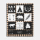 Cette couverture tribale noire et blanche étonnamment élégante et d'amusement de région boisée d'aventure est sûre à svp. Elle comporte l'ours, le loup, les andouillers, les arbres, les flèches, et une plume modelée par tribal au-dessus des carrés noirs et blancs. Le centre inférieur a un secteur nommé personnalisé avec accentuer les flèches blanches. Il y a également une lettre variable de monogramme à l'intérieur des andouillers blancs. L'arrière - plan de la couverture est un plaid de taupe qui peut être changé en customisant la couleur d'arrière - plan. Cette couverture vient dans toutes les tailles même qu'un petit bébé a classé on la rendant grande pour un cadeau de baby shower !