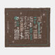 Cette couverture en toison moderne présente un poème de Noël original qui dit "La Saison est ici, cette période de l'année où les coeurs sont tous doux, avec des lumières scintillantes, des nuits chaudes de cacao et de la neige douce". Le design branché en cacao et blanc turquoise et chaud est mis en valeur par des lumières étincelantes et une étroite bordure d'aqua sur un arrière - plan marron chocolat. Ajoutez votre message personnel et votre ou vos nom(s) à l'aide du modèle fourni. Cherchez ID593 pour voir d'autres produits dans ce jeu de Noël coordonné.