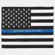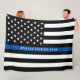 Cette couverture de grande taille comprend une fine ligne bleue noire et blanche de police drapeau américain avec le nom d'un officier pour vous personnaliser. Petites et moyennes tailles également disponibles dans notre collection.