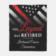 Cette conception comprend un drapeau de pompiers avec des rayures noires et blanches, ainsi qu'une fine bande rouge. Le texte "La légende prend sa retraite" se trouve au-dessus du nom du pompier, lieutenant ou chef de l'application de la loi qui prend sa retraite. Célébrez en style avec cette grande bannière en arrière-plan que vous pouvez prendre des photos devant!