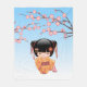 Couverture Polaire Poupée Ume Kokeshi - Japonaise Geisha Girl Blue