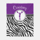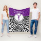 Couverture sauvage d'ouatine cheerleading ou de pom d'impression de zèbre dans le pourpre. Un pom-pom girl ou une silhouette de fille de pom pose à l'intérieur d'un cercle et il y a une bannière "à pois" pour le contraste. Ajoutez votre propre nom avant la commande ! En plus, employez la "personnaliser il" bouton pour plus d'options, y compris une police différente !