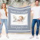 Première couverture en molleton pour bébé de Noël de l'Ange bébé conçue avec une image d'ange aquarelle en bleu et blanc doux, avec texte et accents blancs. Le texte comprend : Premier Noël, le nom et la date de naissance de votre enfant, sur un arrière - plan bleu tendre. Pour personnaliser, il suffit d'insérer le nom et la date de naissance de votre enfant dans notre modèle facile, en remplaçant l'exemple de texte. Fait un grand cadeau de Noël et un souvenir durable.