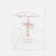 Elégante couverture en toison pour votre première communion sainte avec une croix florale sur un simple arrière - plan blanc. Personnalisez avec le texte, le nom et la date. Fait un don réfléchi pour la communion.