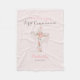 Elégante couverture en toison pour votre première communion sainte avec une croix florale sur un arrière - plan rose rousse. Personnalisez avec le texte, le nom et la date. Fait un don réfléchi pour la première communion.