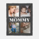 une couverture en toison de maman personnalisée avec un collage photo de 4 et le texte 'happy first mamday, mommy'' , vous pouvez customiser tout le texte et les photos.