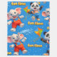 Snuggle up for a world of adventure with the elephant and the panda is ultra soft and cozy premium fleece blanket features of vibrant repeating pattern of your favourite duo. Danny splashing around in his bright red overalls and Dave soaring high with his colourful kite set against a cheerful sky blue background with bold fun time lettering this blanket is perfect for naptime movie nights or adding a playful touch to a nursery or child'durable warm and full of joy