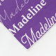 A pretty purple personalized blanket gift decorated in nine different fonts spelling your name in white. Cute customizable present with fun typography.