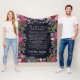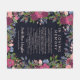 Une couverture commémorative dans un bleu très foncé avec un psaume écrit en rose roux à l'intérieur d'un cadre de fleurs, de verdure et de baies en bordeaux, rose foncé, rose rousse et bleu. Ajoutez le nom de votre être cher dans un joli script.