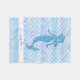 Jolie main dessinée, bleu ciel brillant, douce petite fille sirène sur une échelle de poisson sirène motif en aqua, bleu et lavande avec des touches de violet et le nom de votre fille ou petite-fille personnalisée dans écriture manuscrite typographie avec des fioritures. Oeuvre d'Audrey Jeanne Roberts, artiste et designer de renommée internationale, copyright.