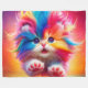 Cette couverture en toison a un chaton arc-en-ciel dessus.