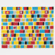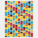 Un design composé de rayures avec bandes peintes à la main, blocs et taches de couleur dans les tons de rouge, ambre, or profond, bleu, gris noir et blanc. Inspiré de totems peints.